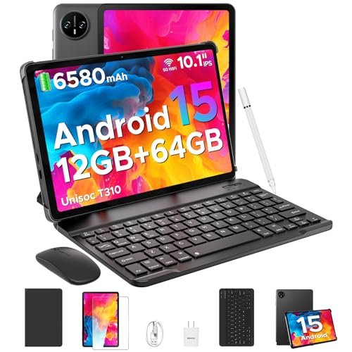 DOOGEE Tab A9 Android Tablet,10 inch Tablet,12GB+64GB/2TB TF,6580mAh Gaming Tablets,2.0GHz Quad Core,1280×800 IPS HD,Dual Speakers,5G WiFi,BT5.0,Face Unlock,Android 15 Tablet with Keyboard,Pen&Mouse