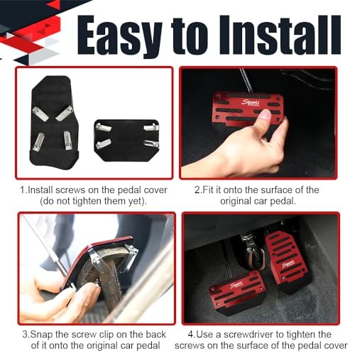 - [Easy installation]: The installation of the car Non-Slip pedal pads set is very simple, only screws and screws are needed to secure the product to the original car gas and brake pedals covers. No drilling required, easy installation.