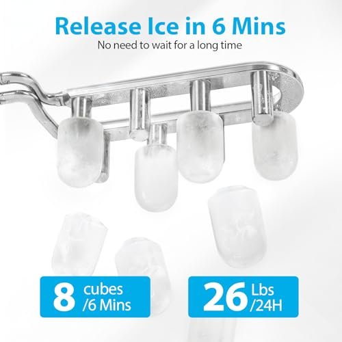 - Ice Ready in Just 6 MINUTES: Stop waiting for ice! Enjoy your first batch of refreshing bullet ice in just 6 minutes, ready whenever the craving hits – for waking up your morning coffee, topping off an afternoon smoothie, or crafting a great-tasting evening cocktail. Keep the ice flowing with a strong 26 lbs daily output for endless chilled refreshment.