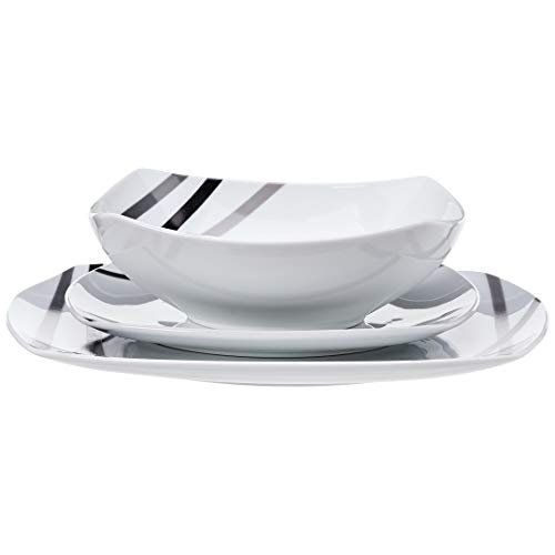 Amazon Basics 18 Piece Kitchen Dinnerware Set, Dishwasher and Microwave Safe, Square Plates, Bowls, Service for 6, Modern Beams