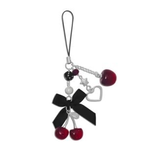 Nalefow Phone Charms Strap Cute Cherry CellPhone Straps Aesthetic Pink Red Black BlueCherry Phone Chain for Camera Keychain Bag Pendant Decor Gift