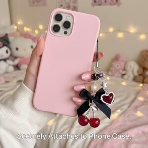 Nalefow Phone Charms Strap Cute Cherry CellPhone Straps Aesthetic Pink Red Black BlueCherry Phone Chain for Camera Keychain Bag Pendant Decor Gift