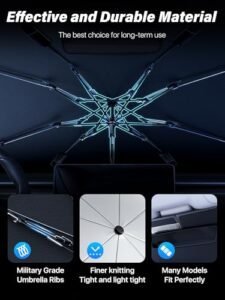 2026 TrySpace Car Windshield Sun Shade Umbrella – [Silver Heat Shield & UV Reflective] Protector for Cars, Universal Fit Medium (56″x31″) | 25°F Cooler, Friendly Vinyl Coatings Medium