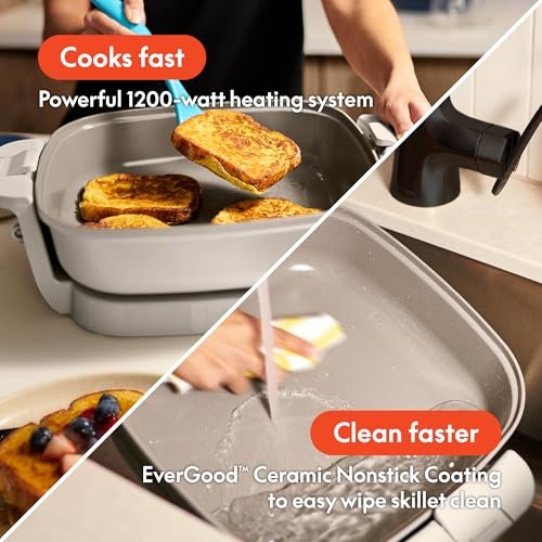 3 reviews for bella Make & Take Electric Skillet, Fits-anywhere™ kitchenware, EverGood™ Ceramic Coating, Adjustable Temperature & Dishwasher-Safe Tempered Glass Lid, Cast Aluminum Base, 1200 Watt, Oatmilk