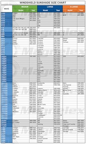 - Perfect Fit for Your Car: Refer to our size chart to select the ideal windshield sun shade for your vehicle. Our large windshield sunshades measure 63 x 33.8 inches, ensuring snug and effective coverage for enhanced protection.