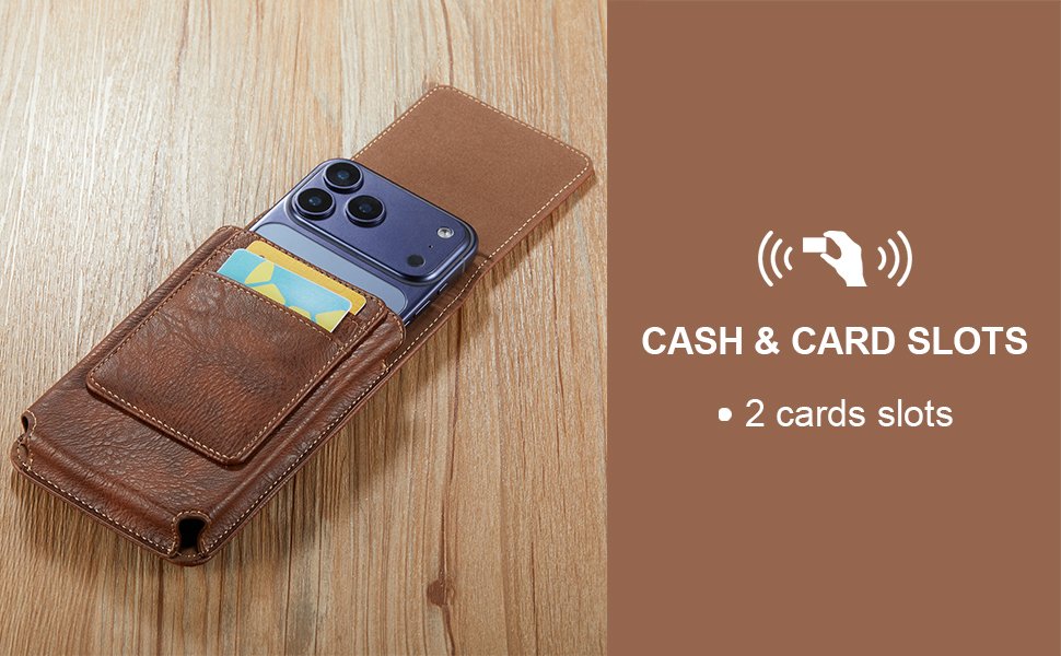 - [Built-In Card Holder] &[VersatiIle Use]: With a built-in card holder, you can conveniently store your ID, credit cards, or cash alongside your phone. Perfect for outdoor activities like construction work, camping, hiking, cycling, and more, this pouch serves not only as a phone holder but also as a utility pouch, keeping your essentials secure and easily accessible.