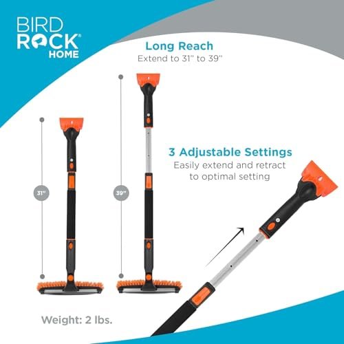 - INCLUSIONS & DIMENSIONS: The snow scraper includes 3 units—Squeegee/Bristle Head Snow Brush, Ice Scraper, and Telescoping extender. Dimensions: Extended size: 11″ Width x 6″ Depth x 39″ Height; Collapsed size: 11″ Width x 6″ Depth x 31″ Height; Weight: 2 lbs.