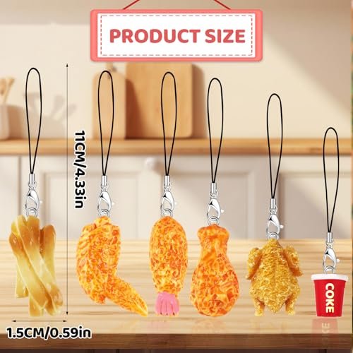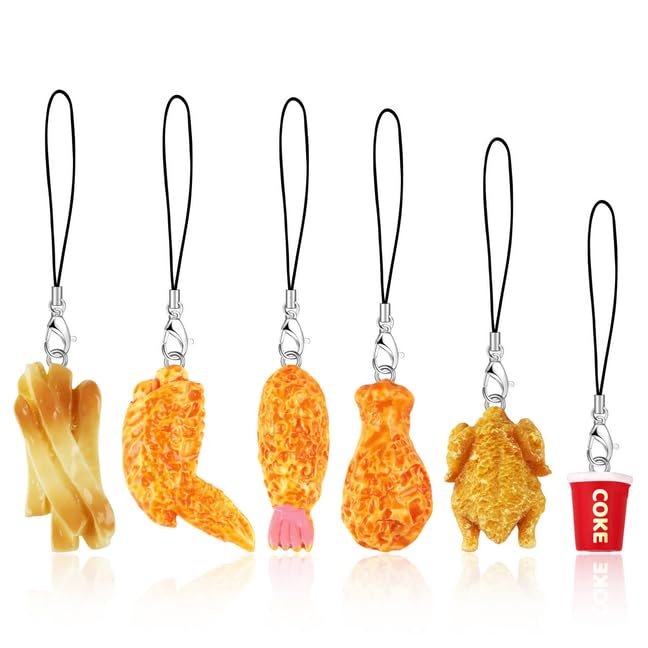 - CUTE CHARMS FOR PHONE: You will receive 6pcs fried chicken charm for phone, These cute fried chicken shape couple fried chicken pendant phone charms come in realistic colors, different styles can be matched with your friend, let you have a different mood every day!