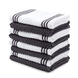 Sticky Toffee Cotton Dishcloths Set of 8 – Gray and White Kitchen Towels 12×12 in, Reusable and Absorbent Tea Towels for Cleaning or Drying, Oeko-Tex Cotton