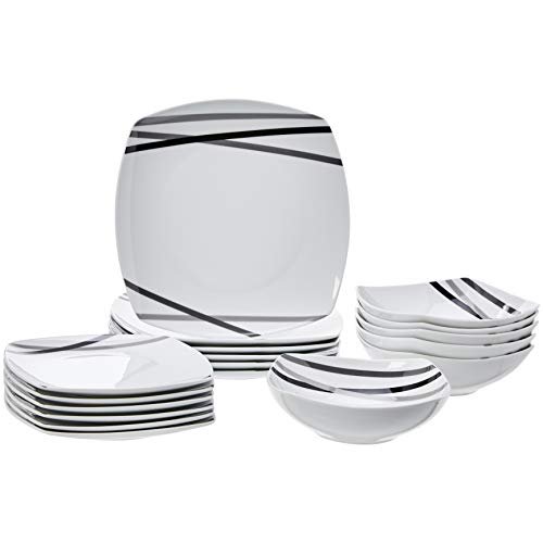 Amazon Basics 18 Piece Kitchen Dinnerware Set, Dishwasher and Microwave Safe, Square Plates, Bowls, Service for 6, Modern Beams